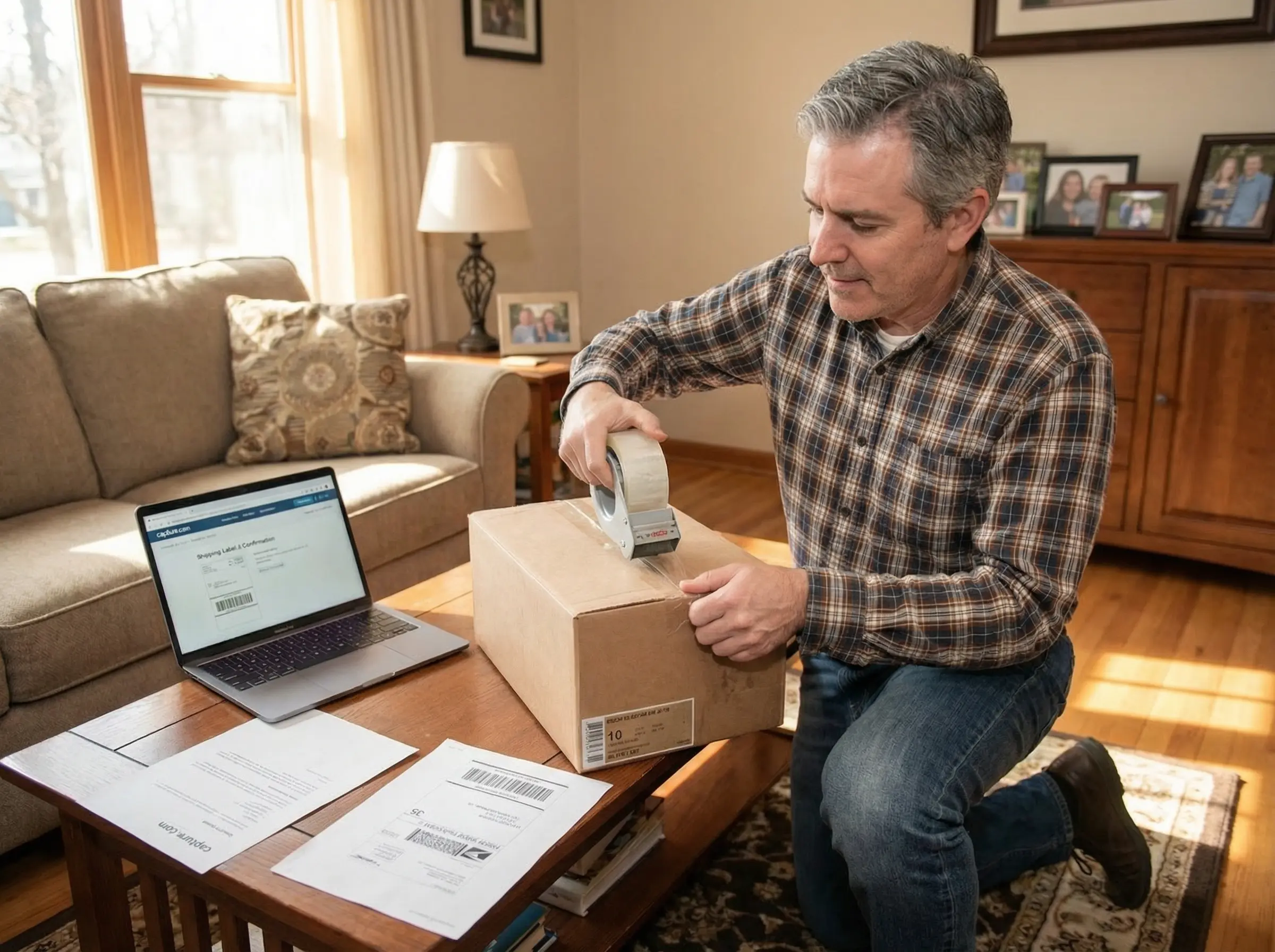 Use the free prepaid shipping label we provide. Pack your items in any box and drop it at any UPS location.